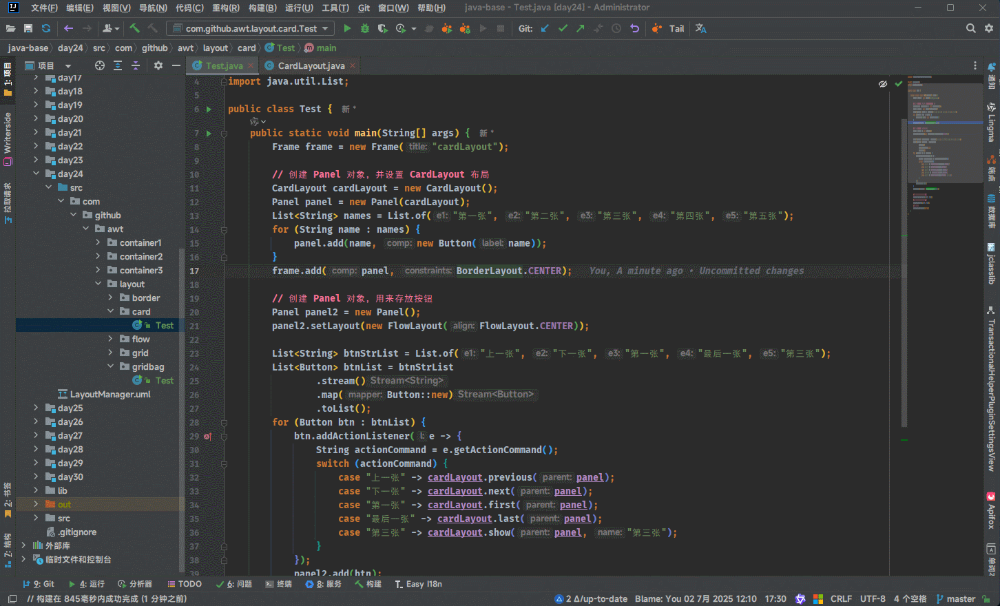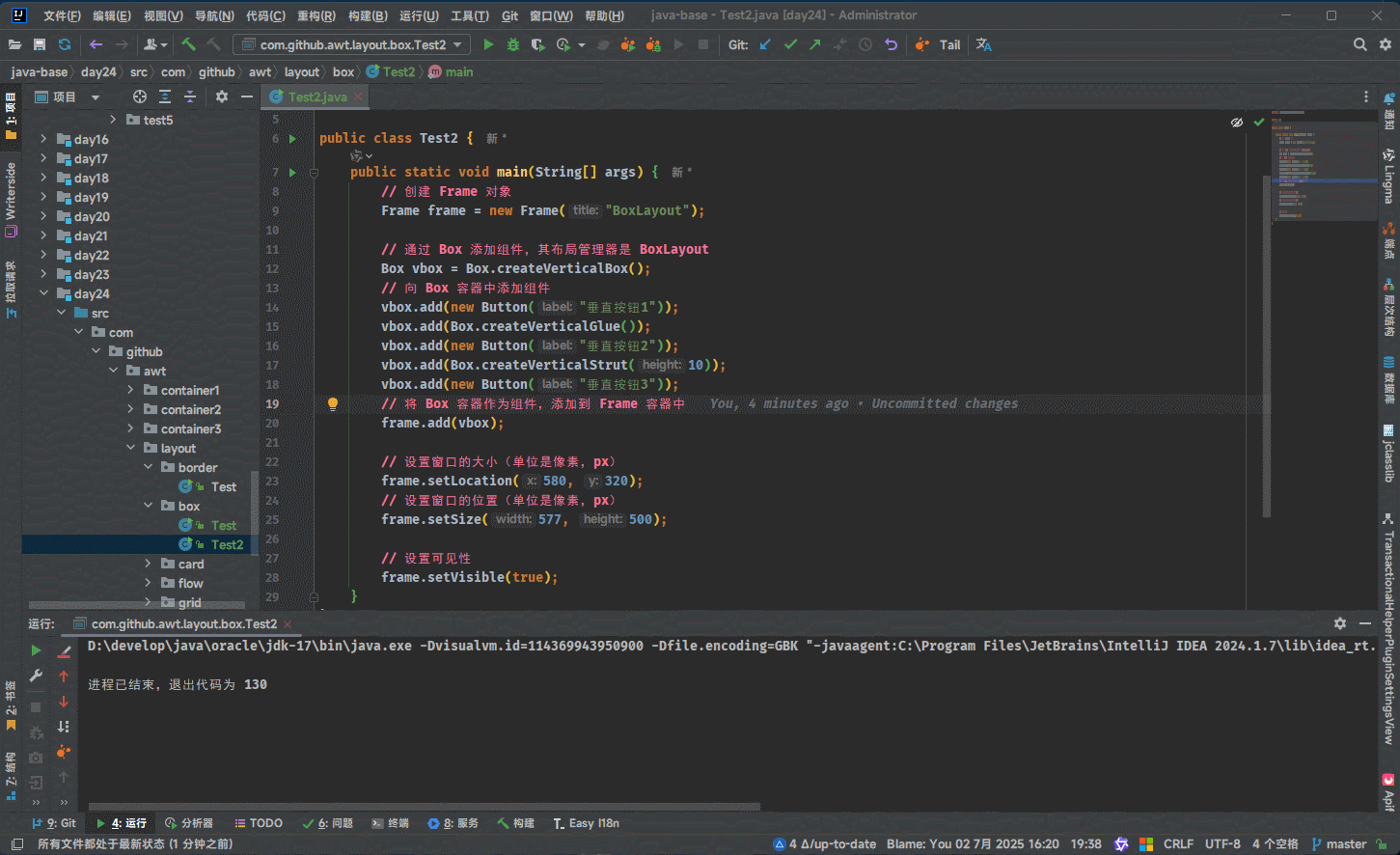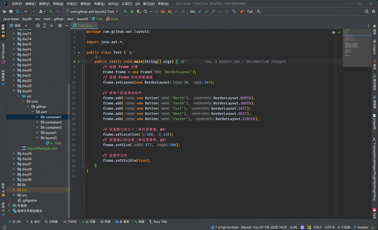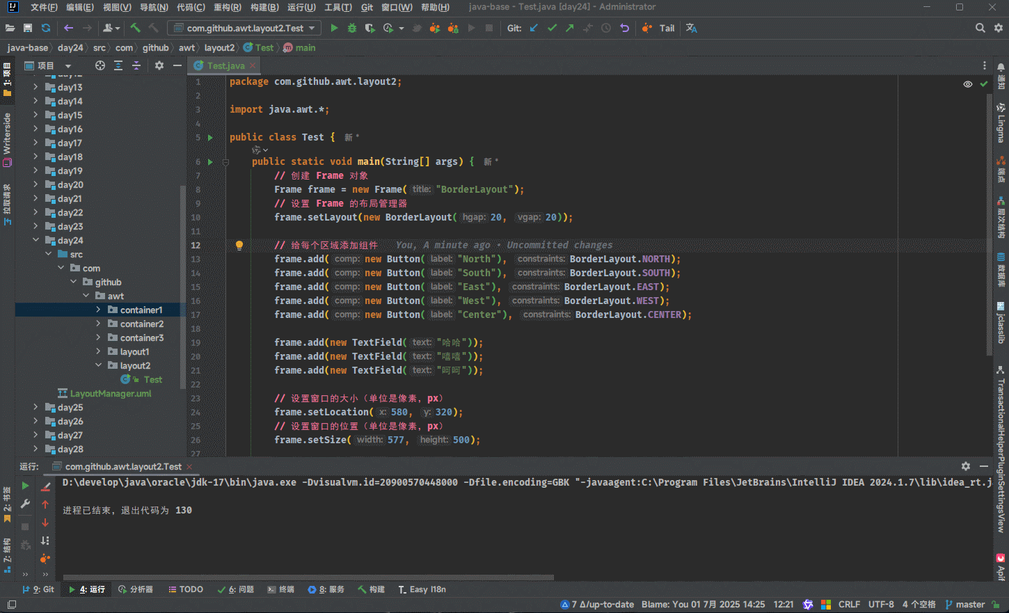 (布局管理器),即:如果一个容器中有多个组件,该容器就需要使用LayoutManager