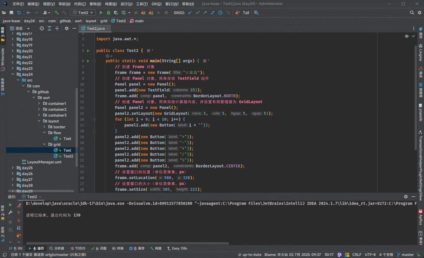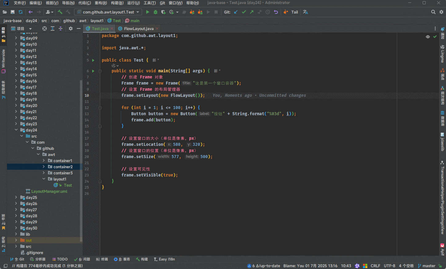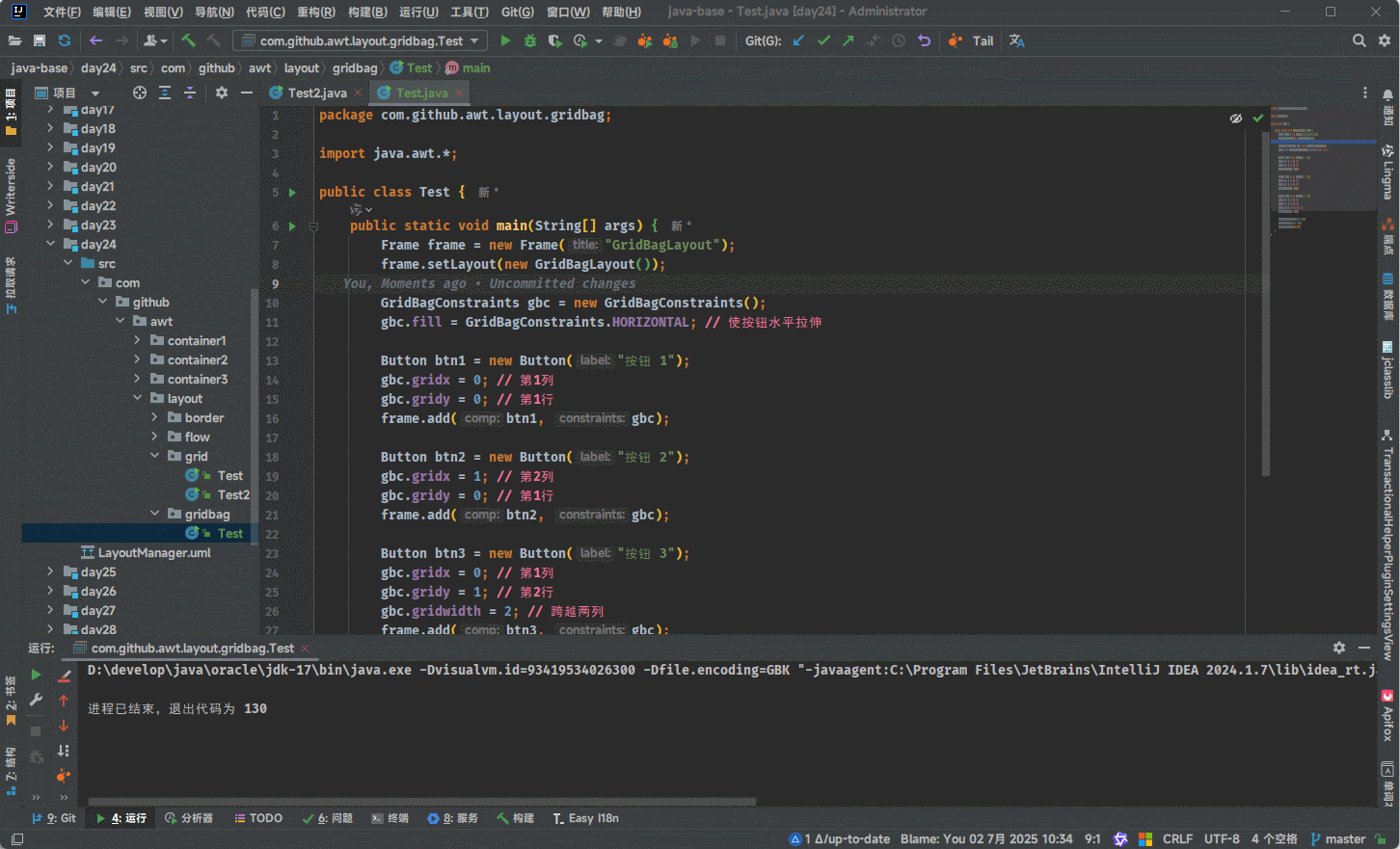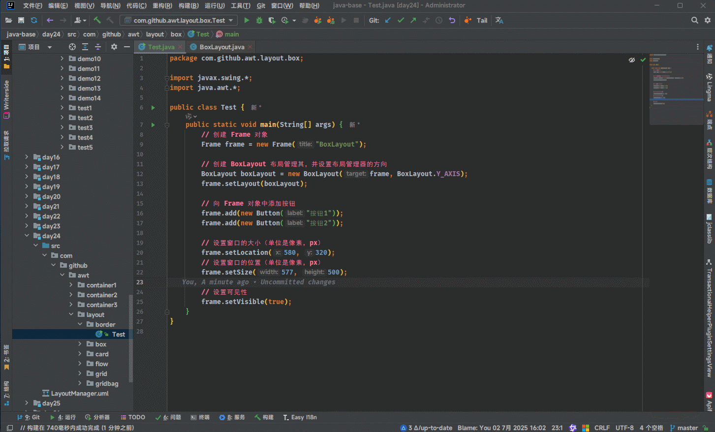 (布局管理器),即:如果一个容器中有多个组件,该容器就需要使用LayoutManager