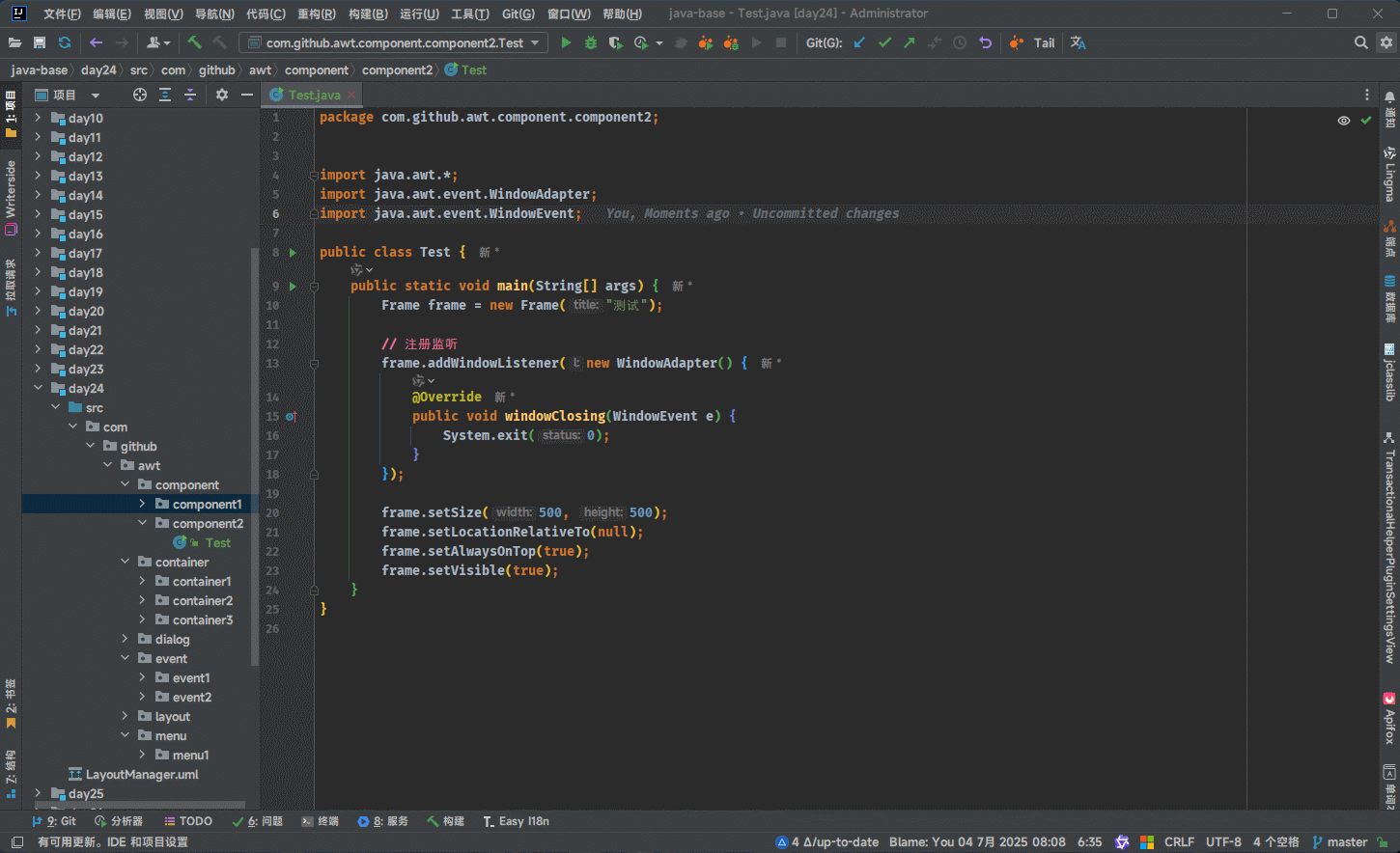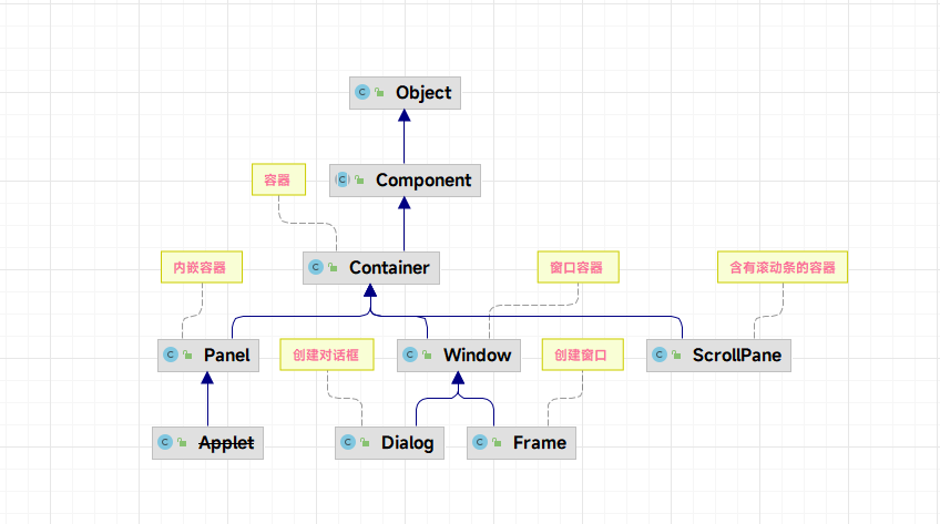 - ③ Container 是一种特殊的 Component,它代表一种容器,可以存放普通的 Component。