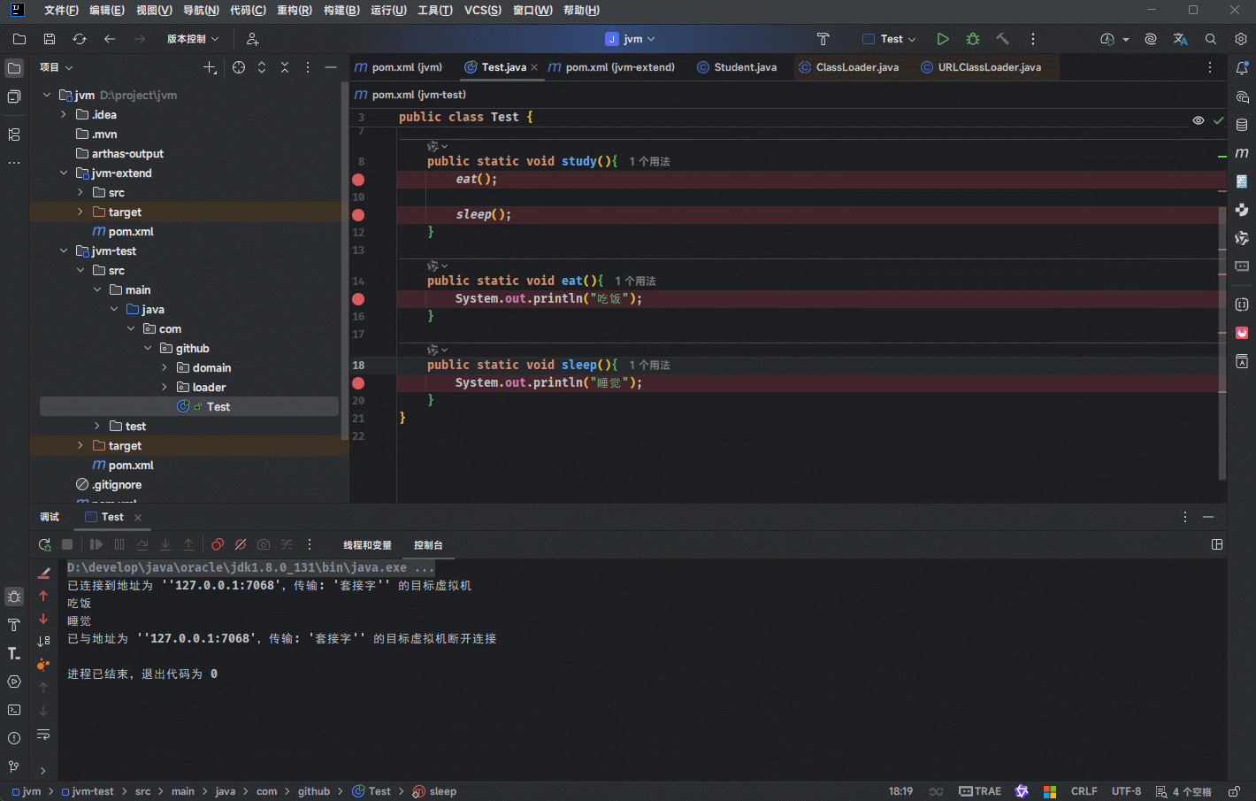 类加载器将字节码文件加载到内存中,以便后续使用。在进行加载的时候,JVM 会使用到两块内存区域 ---方法区和堆。