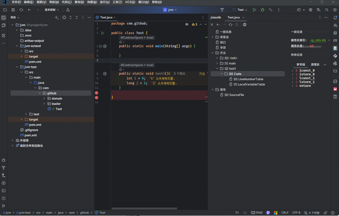 | 3️⃣ 作用于栈帧(局部变量表 + 操作数栈) | 大部分字节码不是直接操作寄存器/内存,而是依赖局部变量表和 操作数栈。例如: iload_1 → 从局部变量表 slot 1 取值 → 压入操作数栈 |