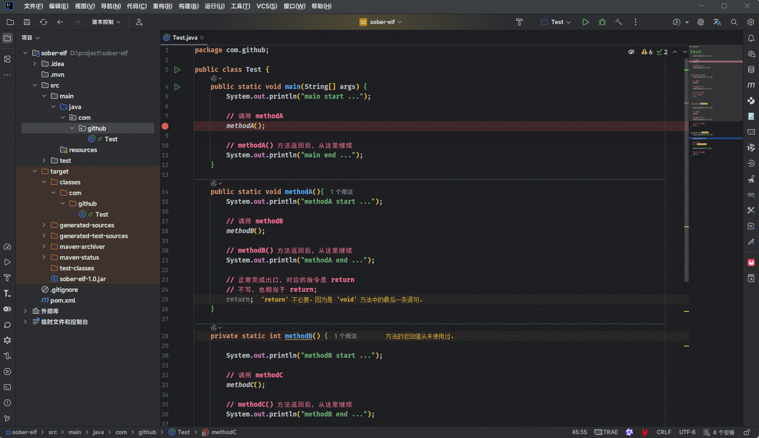- ② 无论那种方式退出,在方法退出后都应该返回到该方法被调用的位置:
