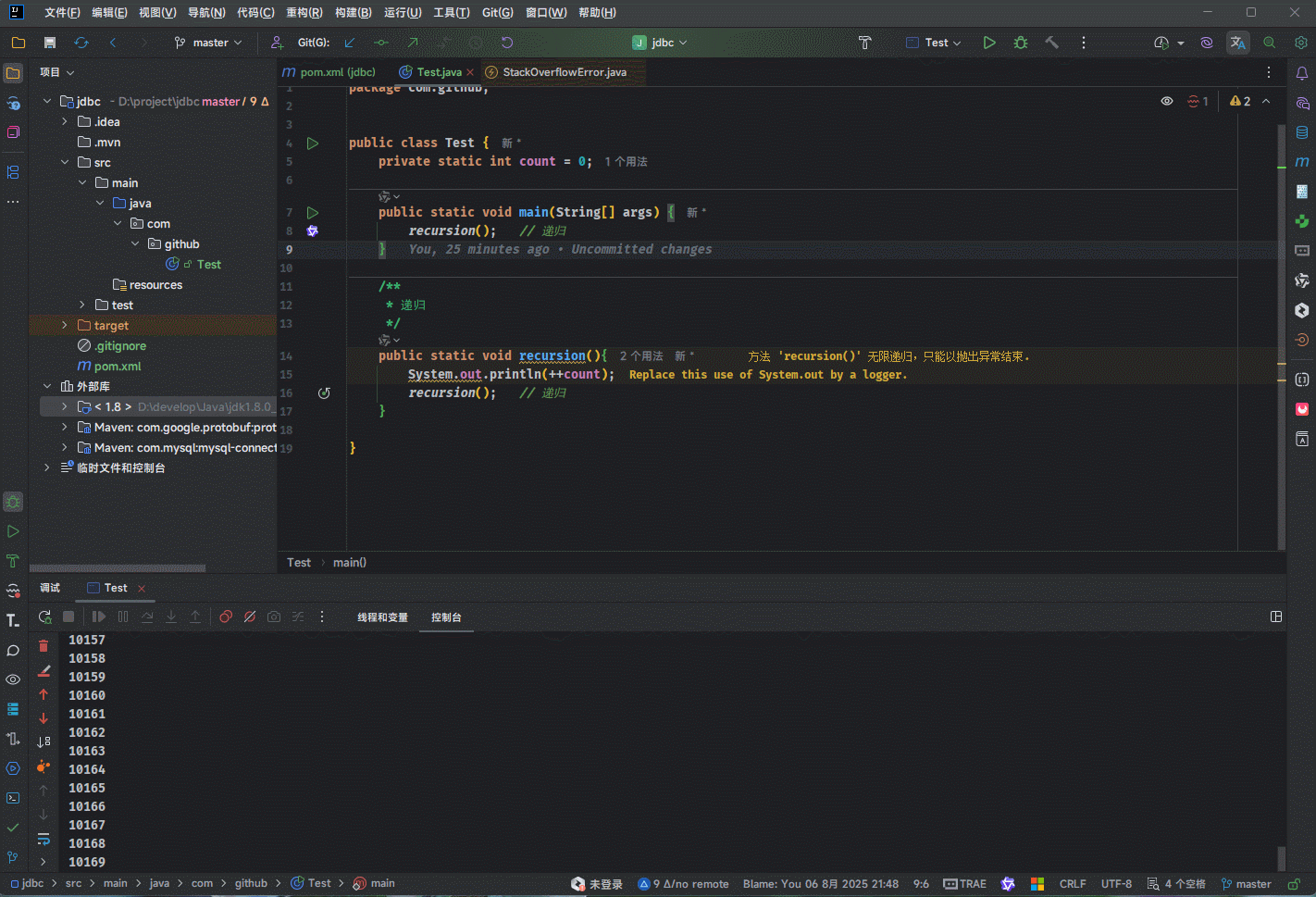 - 示例:IDEA 配置 JVM 参数来调整栈大小