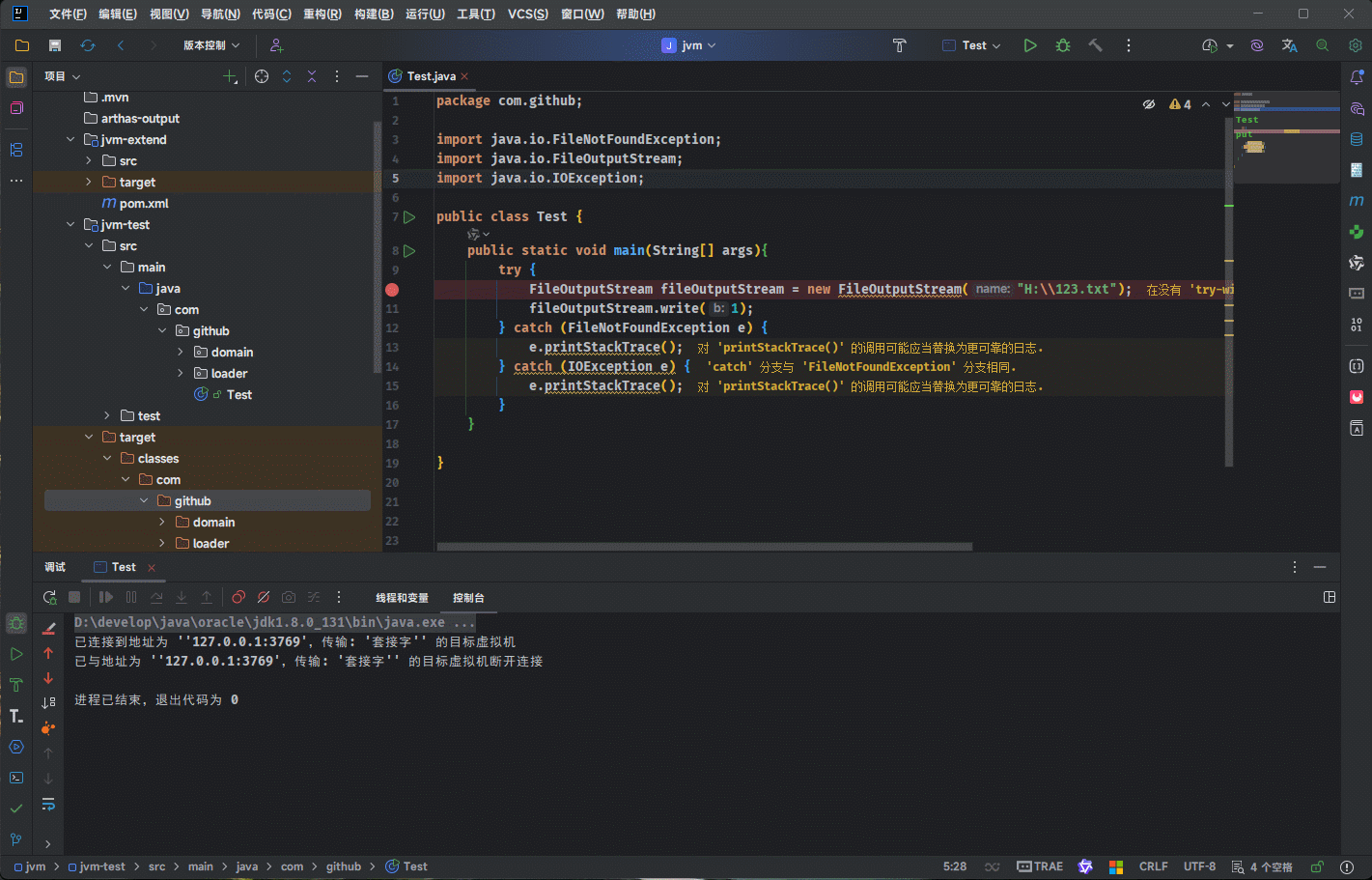 - 2️⃣ 非正常退出,即:出现异常,但是没有处理。