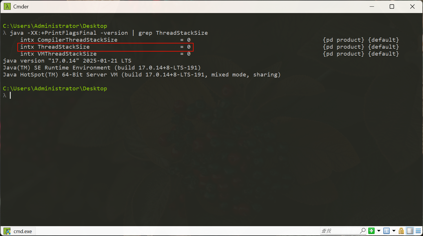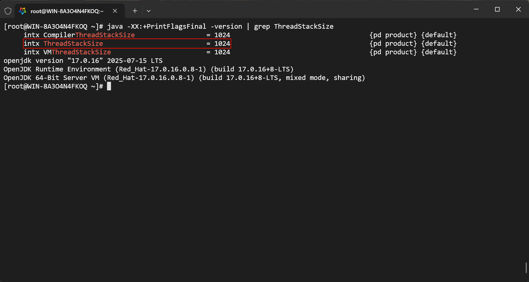 java -XX:+PrintFlagsFinal -version | grep ThreadStackSize