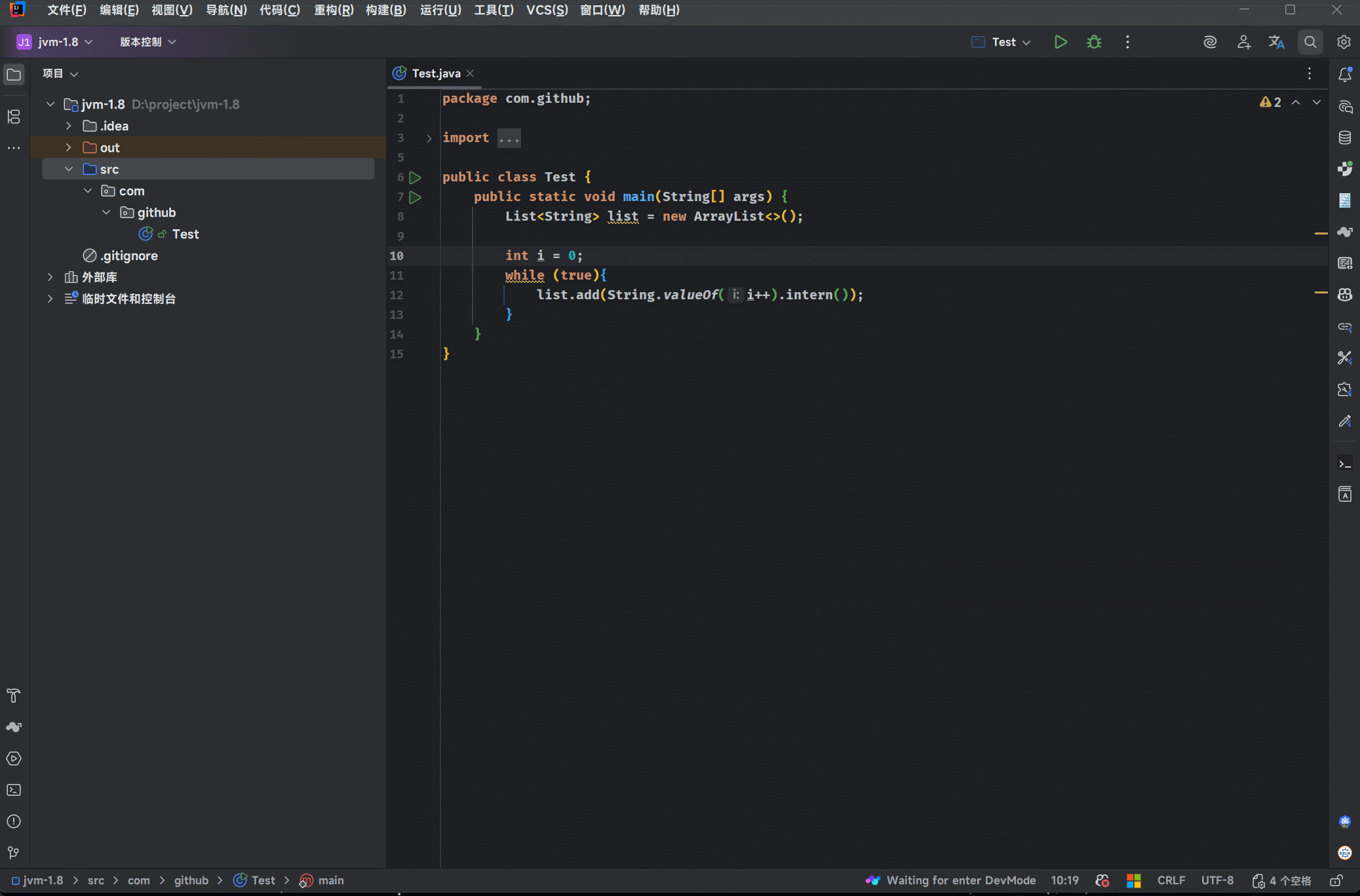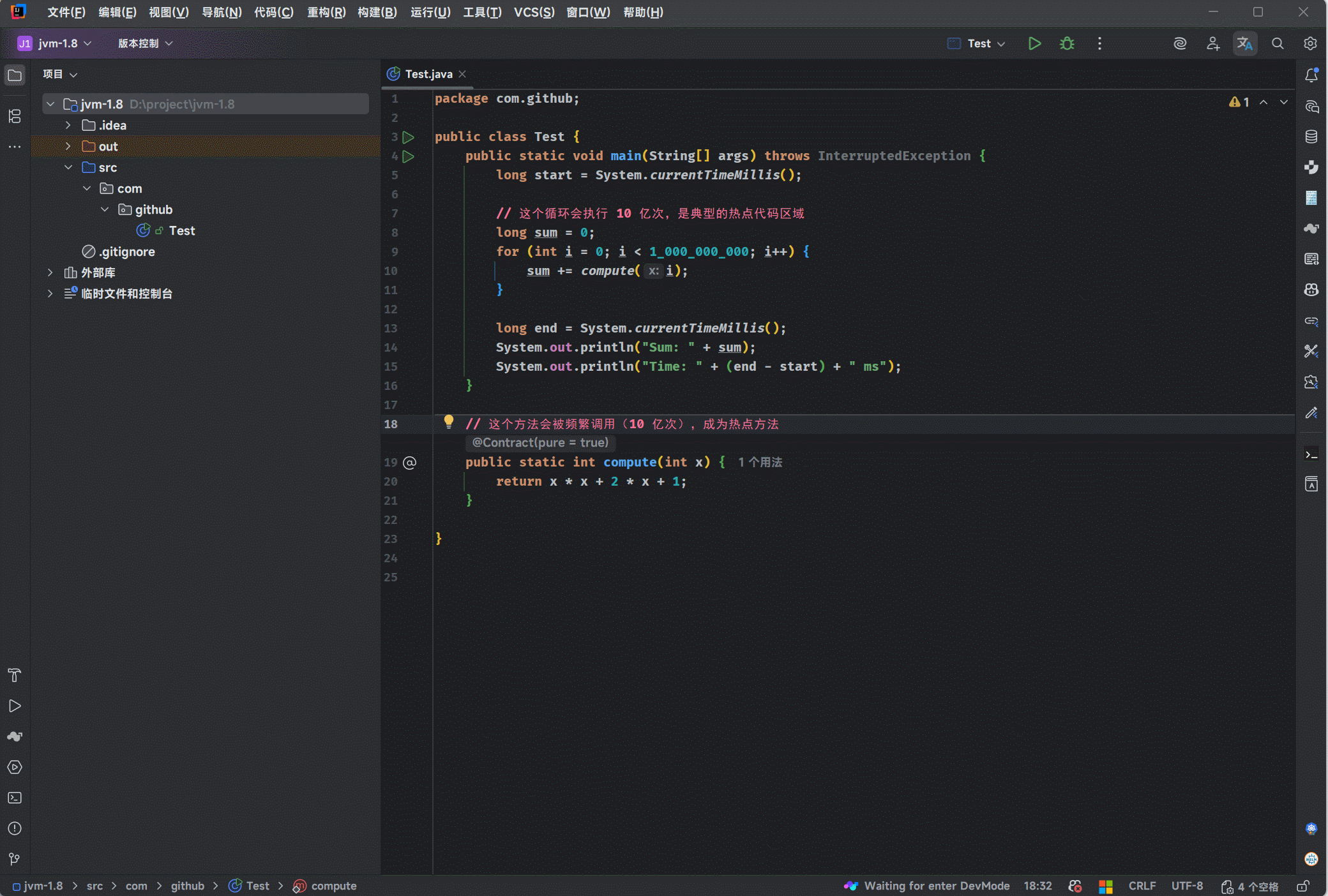 497 34 % 4 com.github.Test::main @ -2 (95 bytes) made not entrant